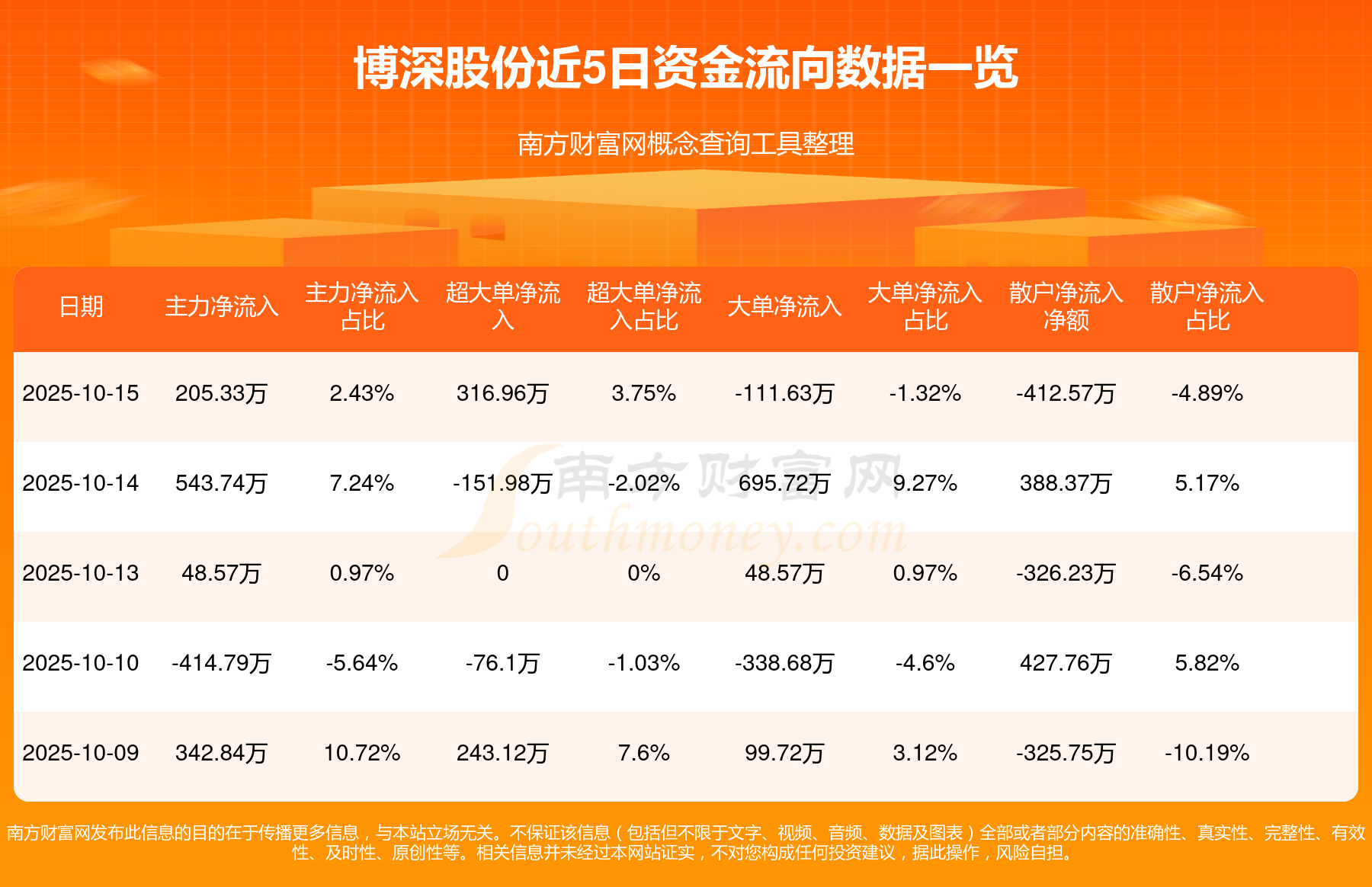 10月15日该股主力净入205.33万元,其中资金流入方面:超大单净入574.07万元,大单净入1952.94万元,中单净入2796.51万元,散户净入3034.06万元;资金流出方面:超大单净出257.11万元,大单净出2064.56万元,中单净出2589.27万元,散户净出3446.63万元。