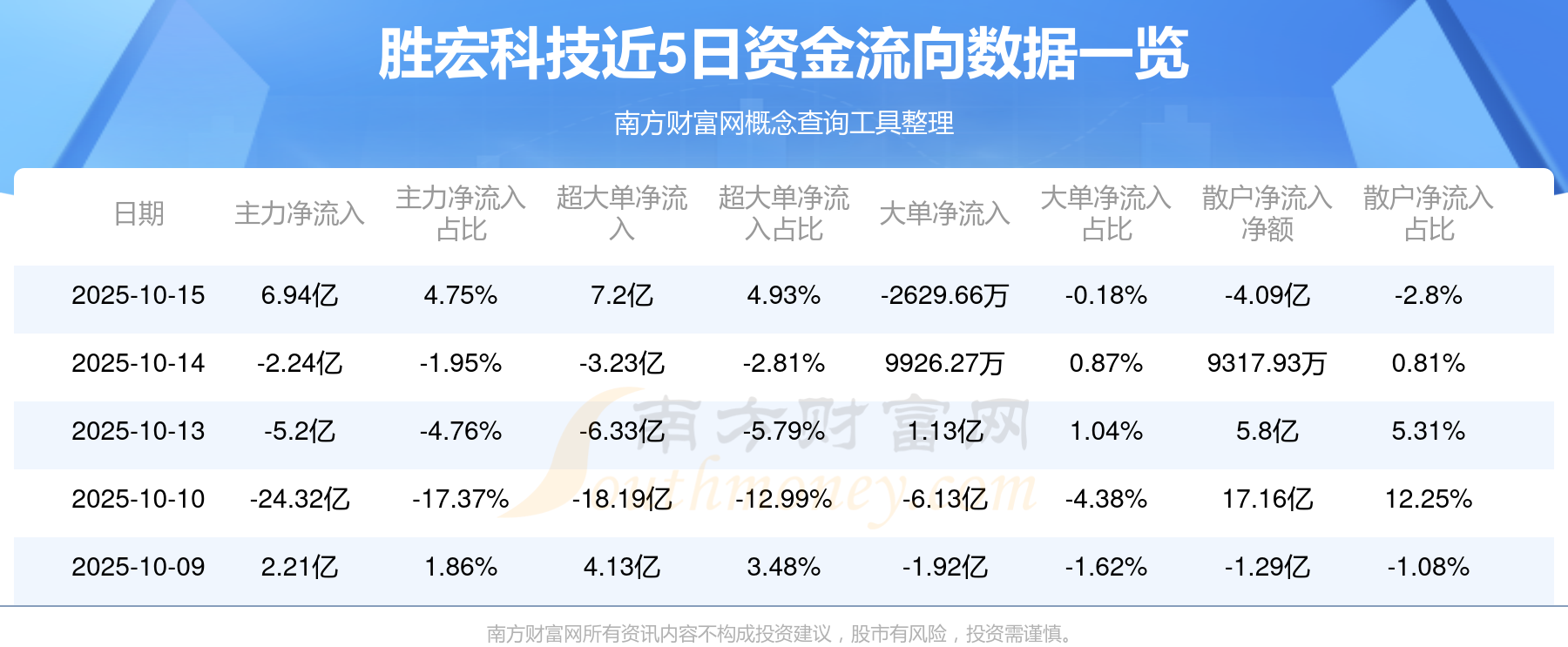 10月15日该股主力资金净流入6.94亿元,超大单资金净流入7.2亿元,大单资金净流出2629.66万元,中单资金净流出2.85亿元,散户资金净流出4.09亿元。