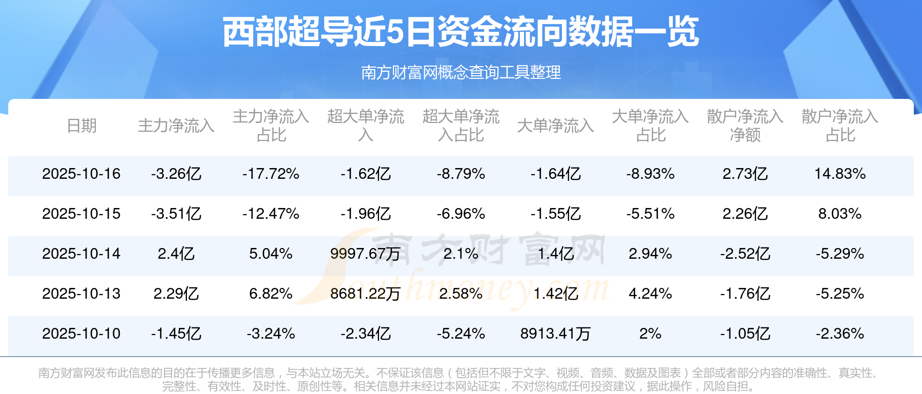 10月16日消息,西部超导10月16日主力资金净流出3.26亿元,超大单资金净流出1.62亿元,大单资金净流出1.64亿元,散户资金净流入2.73亿元。
