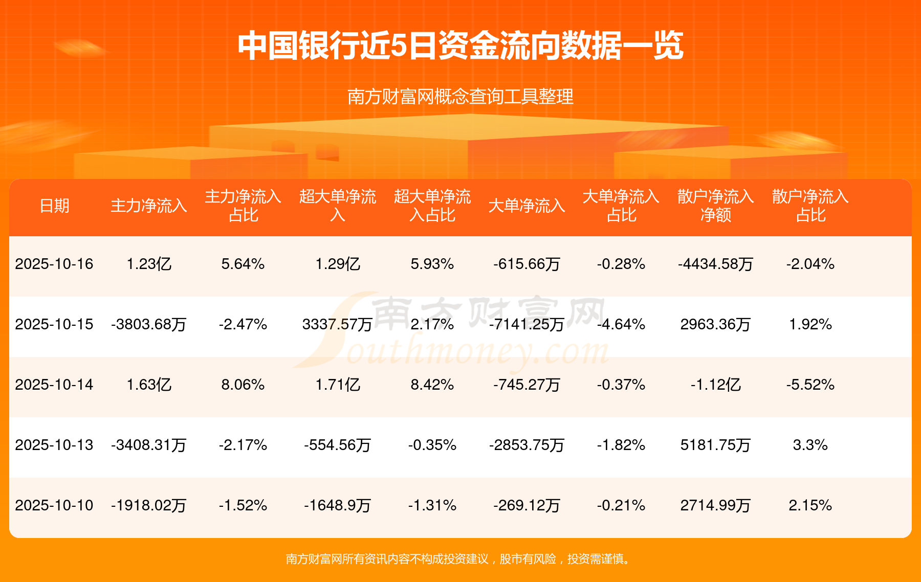10月16日该股主力净入1.23亿元,其中资金流入方面:超大单净入6.66亿元,大单净入6.15亿元,中单净入4.89亿元,散户净入3.67亿元;资金流出方面:超大单净出5.37亿元,大单净出6.21亿元,中单净出5.67亿元,散户净出4.11亿元。
