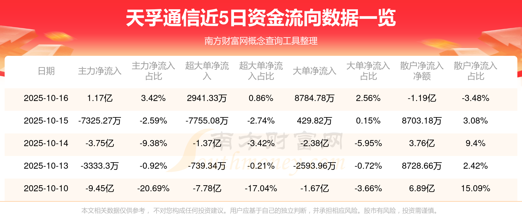 10月16日消息,天孚通信10月16日主力资金净流入1.17亿元,超大单资金净流入2941.33万元,大单资金净流入8784.78万元,散户资金净流出1.19亿元。
