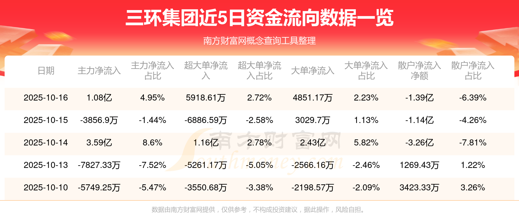 10月16日消息,三环集团主力净流入1.08亿元,超大单净流入5918.61万元,散户净流出1.39亿元。
