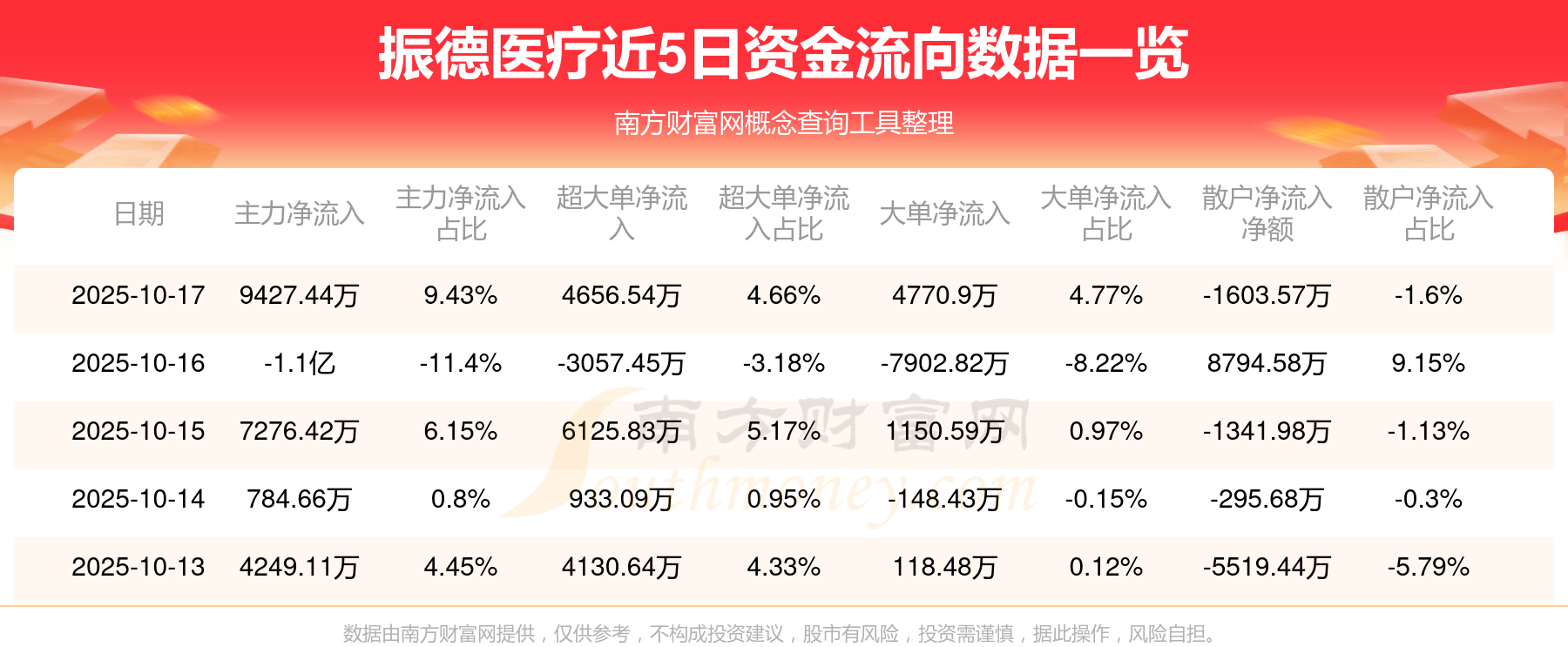 10月17日该股主力净流入9427.44万元,超大单净流入4656.54万元,大单净流入4770.9万元,中单净流出7823.87万元,散户净流出1603.57万元。