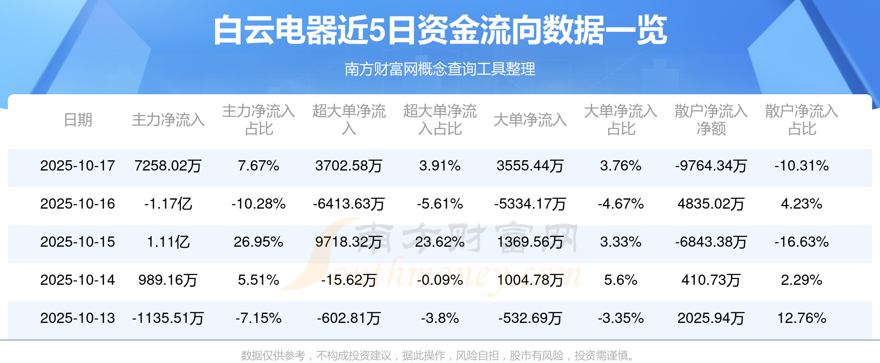 10月17日消息,白云电器主力资金净流入7258.02万元,超大单资金净流入3702.58万元,散户资金净流出9764.34万元。