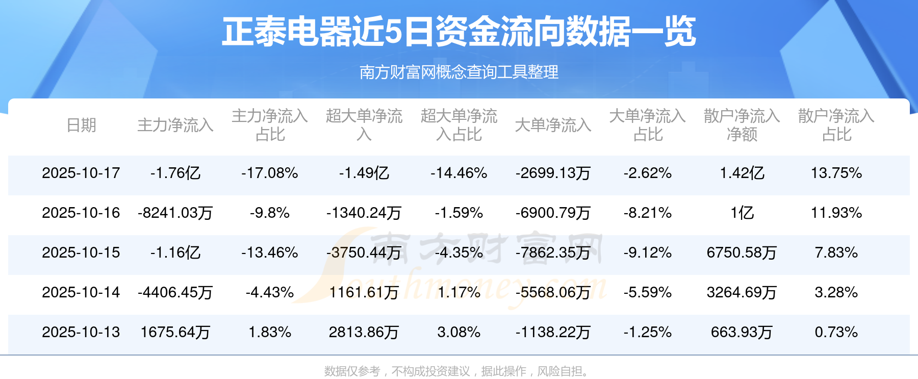 10月17日消息,正泰电器主力净流出1.76亿元,超大单净流出1.49亿元,散户净流入1.42亿元。