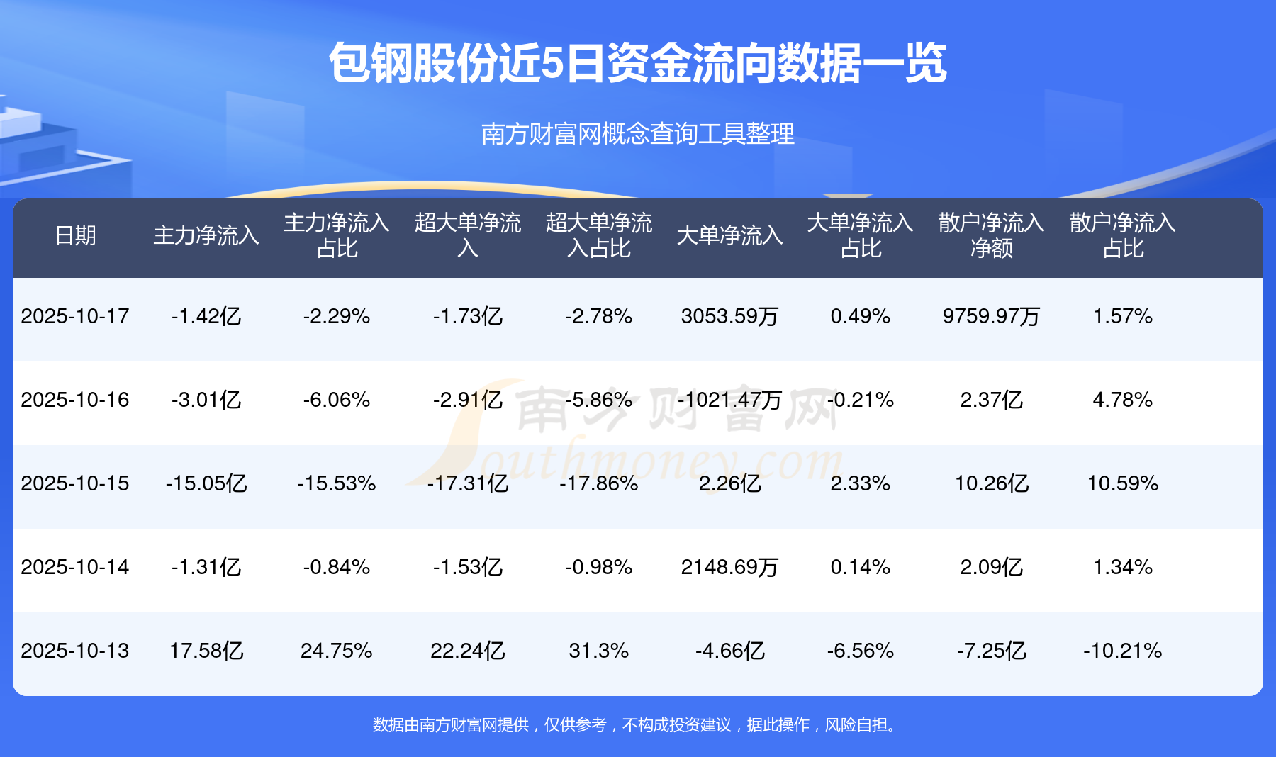 近5日资金流向一览见下表: