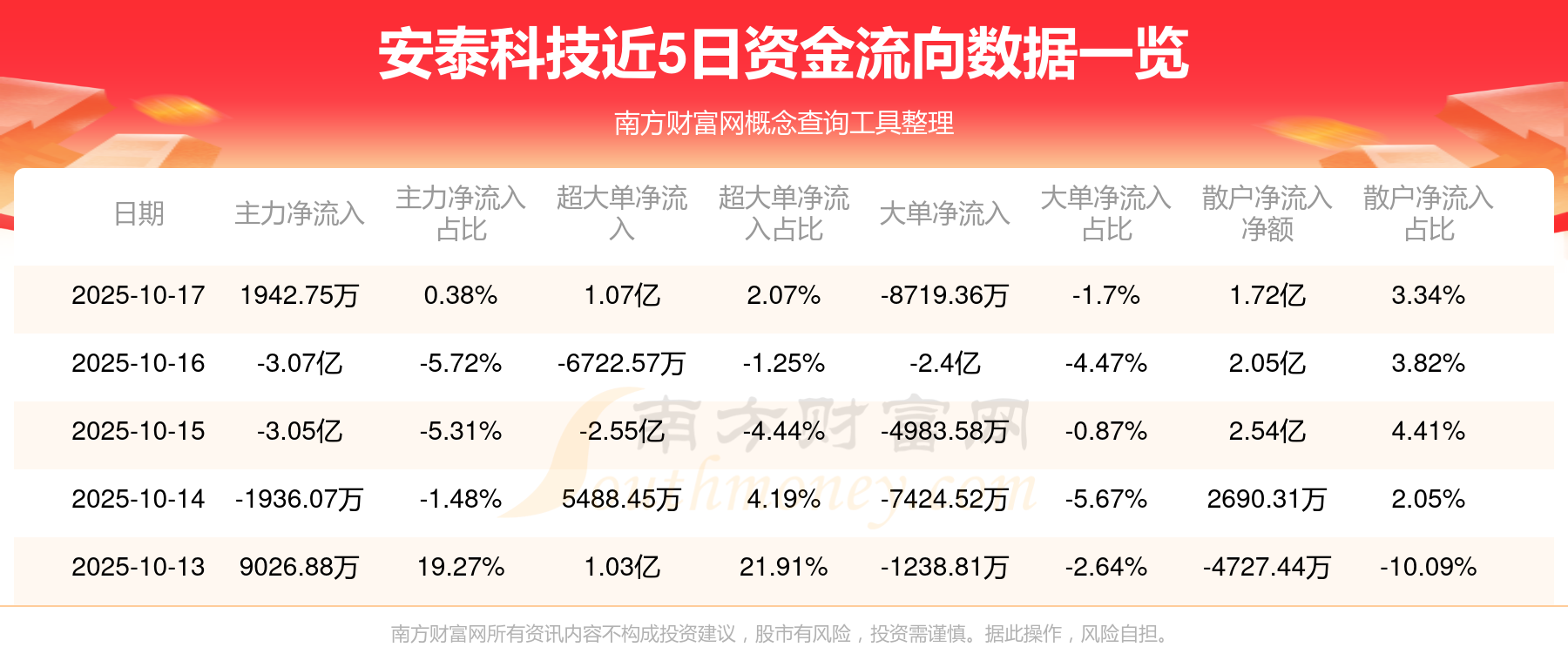 10月17日消息,资金净流入1942.75万元,超大单净流入1.07亿元,成交金额51.39亿元。