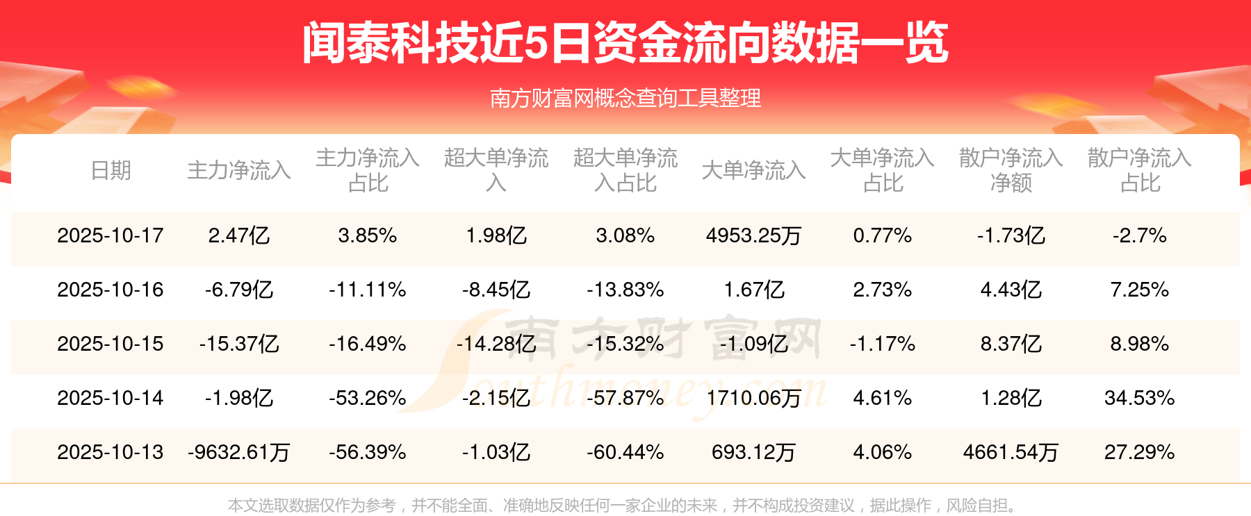 10月17日消息,闻泰科技资金净流入2.47亿元,超大单资金净流入1.98亿元,换手率13.39%,成交金额64.18亿元。
