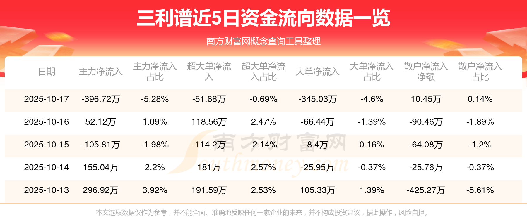 10月17日消息,三利谱主力资金净流出396.72万元,超大单资金净流出51.68万元,散户资金净流入10.45万元。