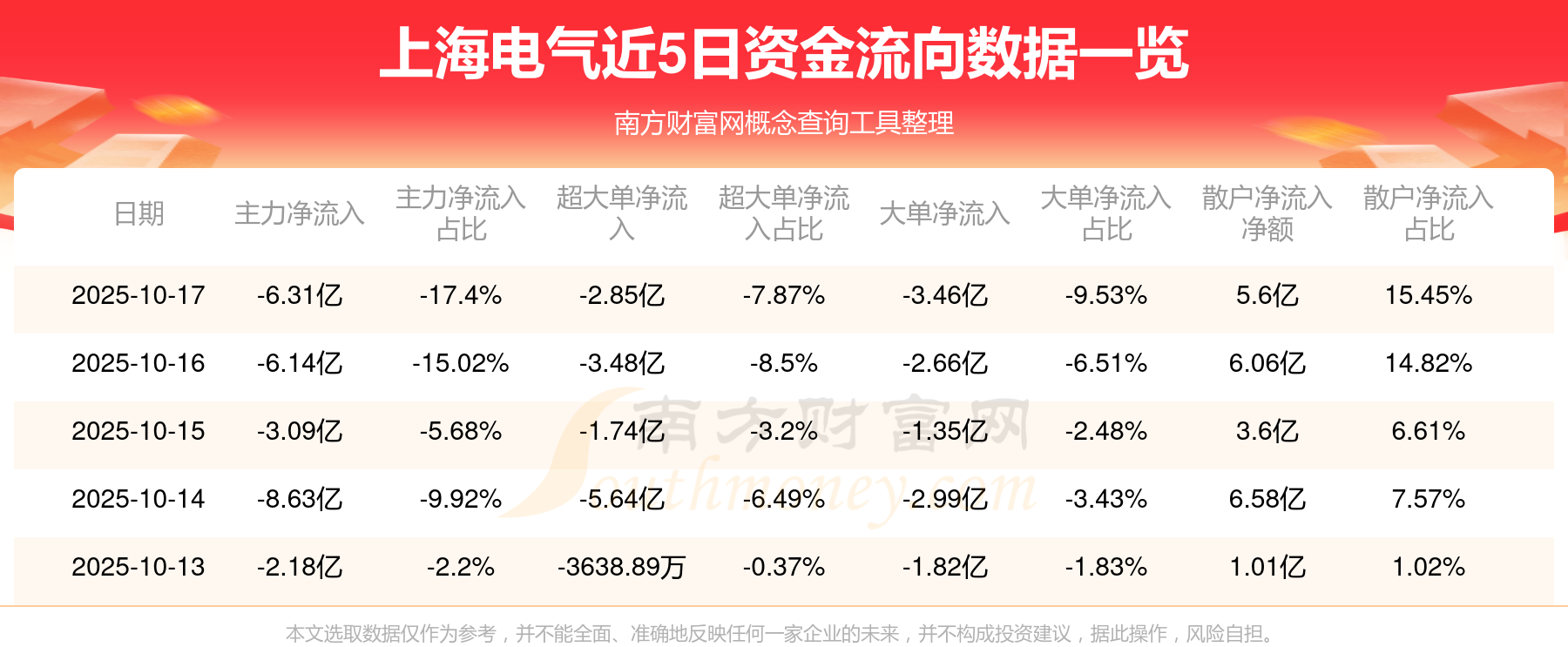 10月17日该股主力净流出6.31亿元,超大单净流出2.85亿元,大单净流出3.46亿元,中单净流入7052.37万元,散户净流入5.6亿元。