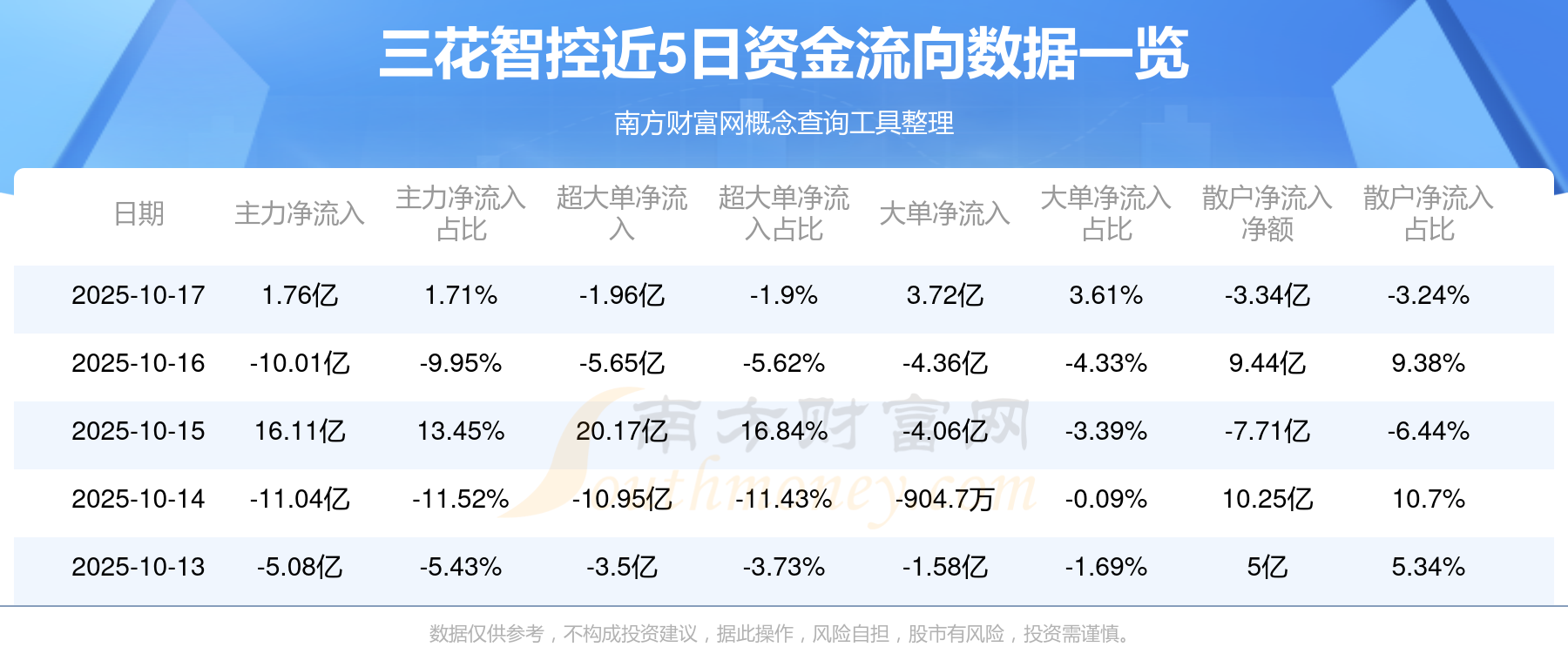 10月17日消息,三花智控主力净流入1.76亿元,超大单净流出1.96亿元,散户净流出3.34亿元。