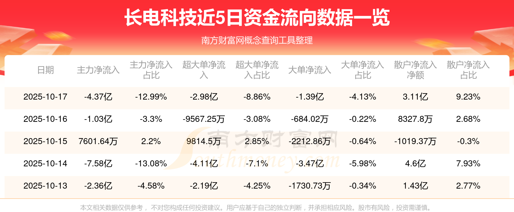 10月17日消息,长电科技资金净流出4.37亿元,超大单净流出2.98亿元,换手率4.67%,成交金额33.64亿元。