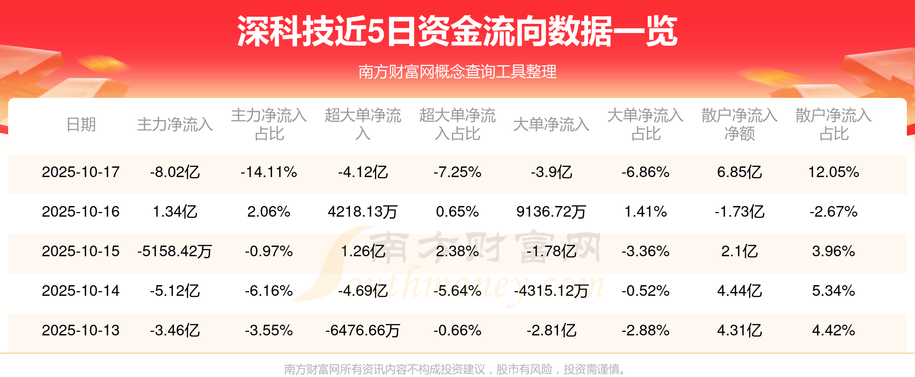资金流向数据方面,10月17日主力资金净流流出8.02亿元,超大单资金净流出4.12亿元,大单资金净流出3.9亿元,散户资金净流入6.85亿元。