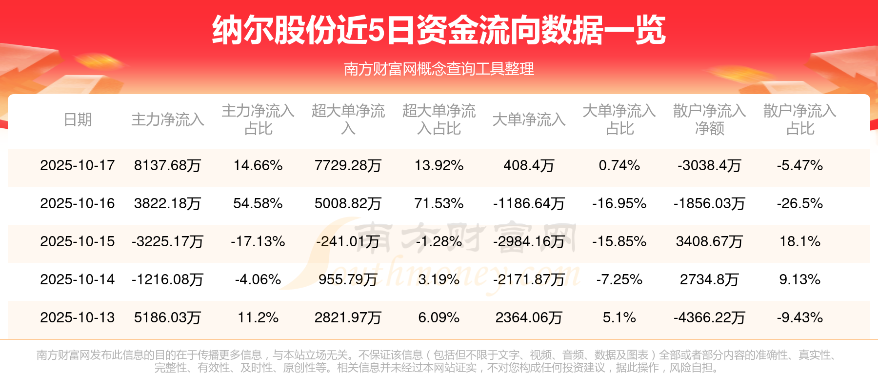 10月17日消息,纳尔股份主力净流入8137.68万元,超大单净流入7729.28万元,散户净流出3038.4万元。