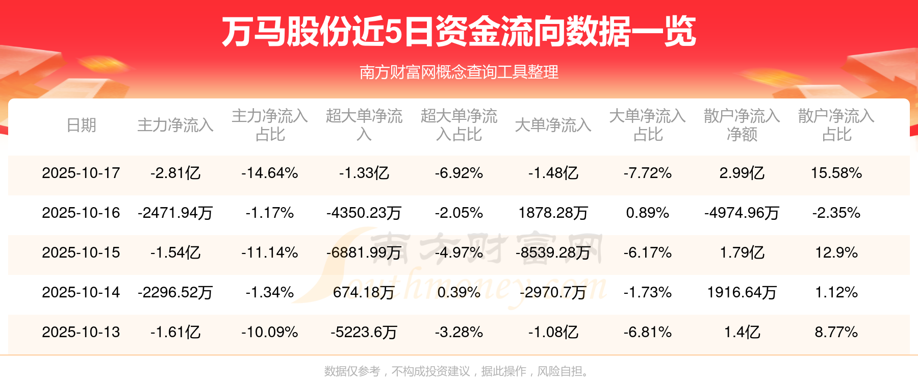 10月17日该股主力净流出2.81亿元,超大单净流出1.33亿元,大单净流出1.48亿元,中单净流出1811.5万元,散户净流入2.99亿元。