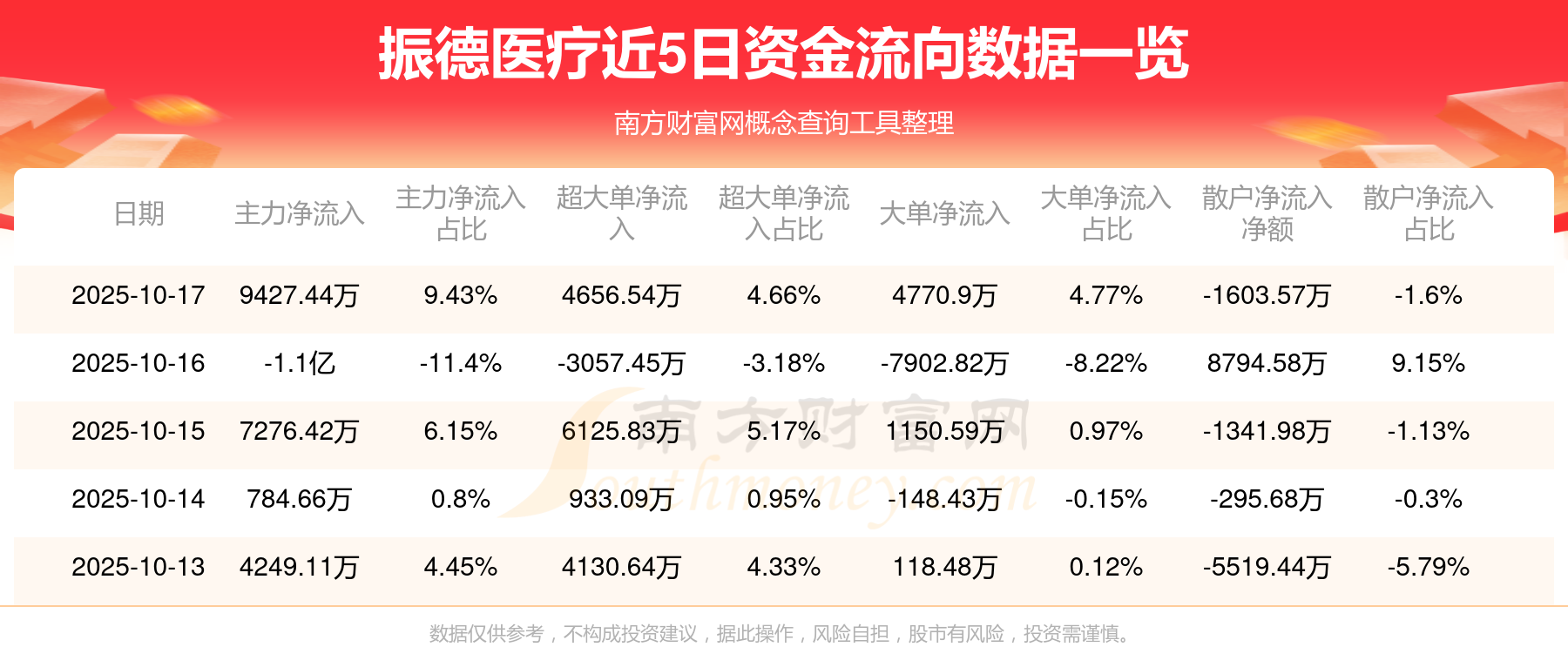 10月17日消息,振德医疗10月17日主力资金净流入9427.44万元,超大单资金净流入4656.54万元,大单资金净流入4770.9万元,散户资金净流出1603.57万元。