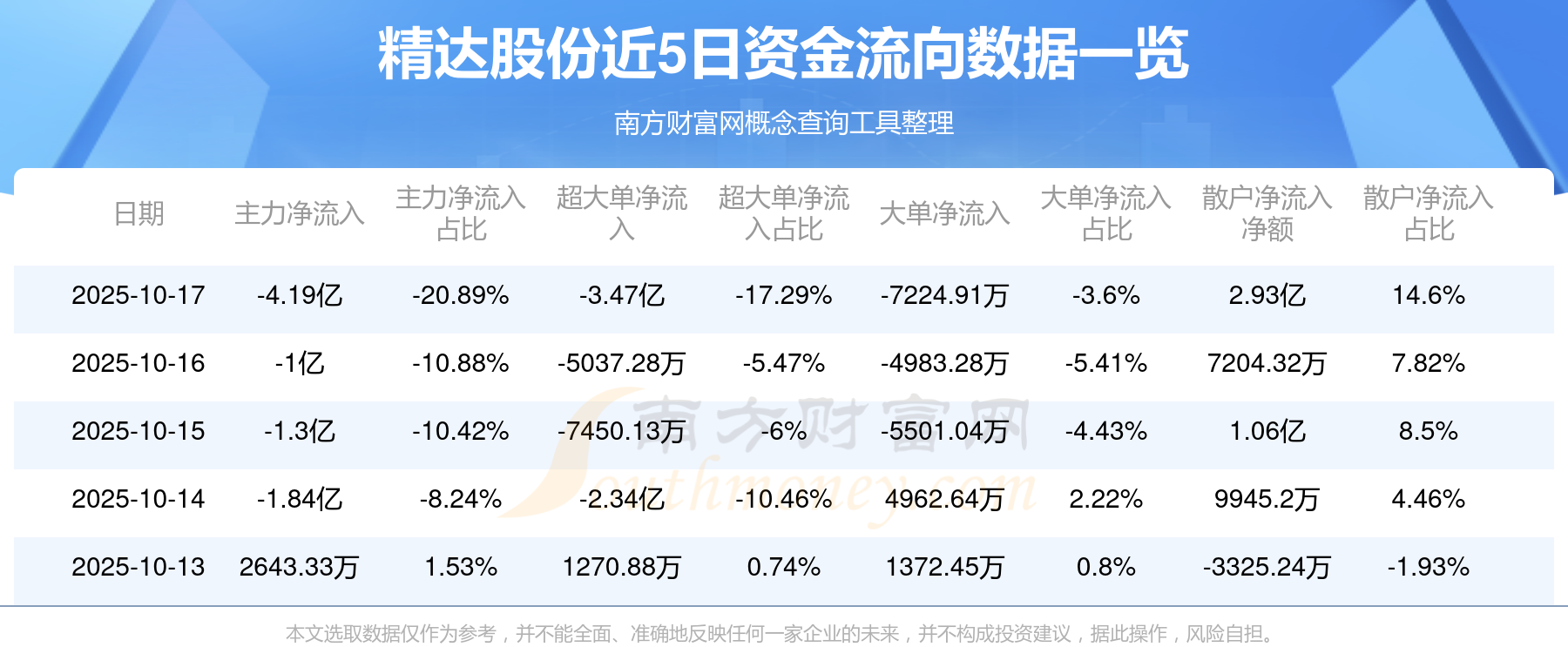 10月17日资金净流出4.19亿元,超大单净流出3.47亿元,换手率9.46%,成交金额20.05亿元。