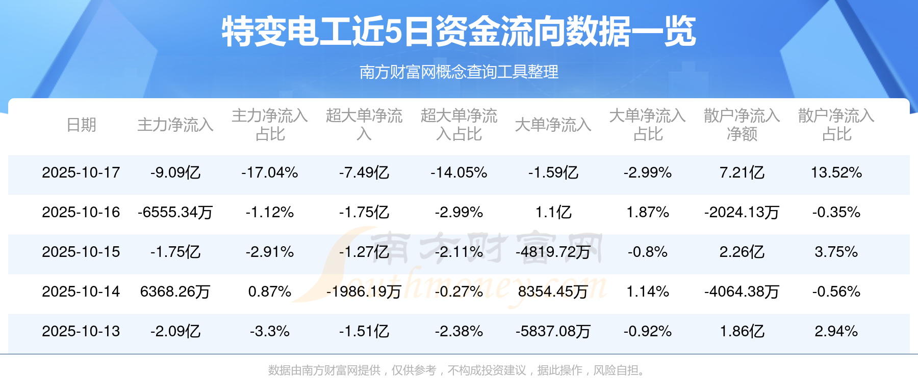 10月17日消息,特变电工资金净流出9.09亿元,超大单净流出7.49亿元,换手率5.45%,成交金额53.32亿元。