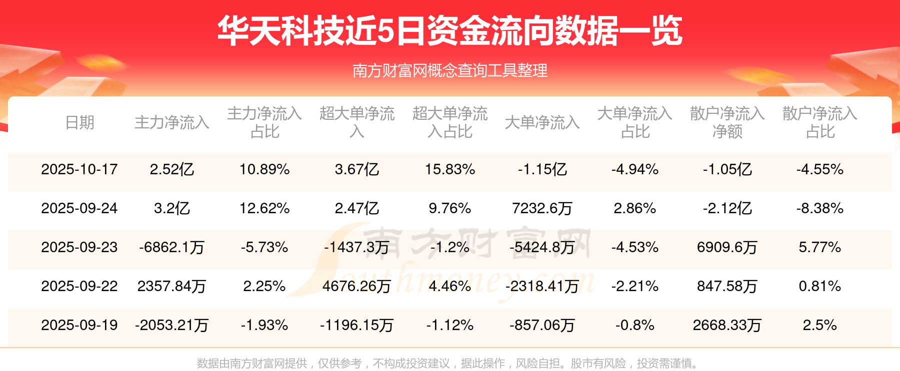 10月17日该股主力净流入2.52亿元,超大单净流入3.67亿元,大单净流出1.15亿元,中单净流出1.47亿元,散户净流出1.05亿元。
