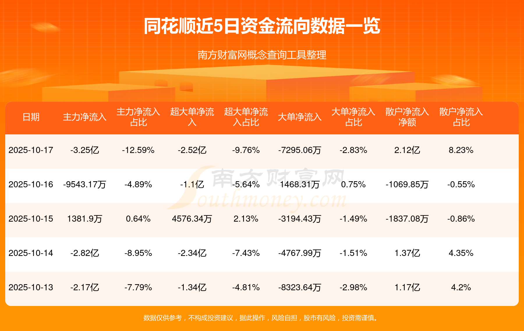 资金流向数据方面,10月17日主力资金净流流出3.25亿元,超大单资金净流出2.52亿元,大单资金净流出7295.06万元,散户资金净流入2.12亿元。