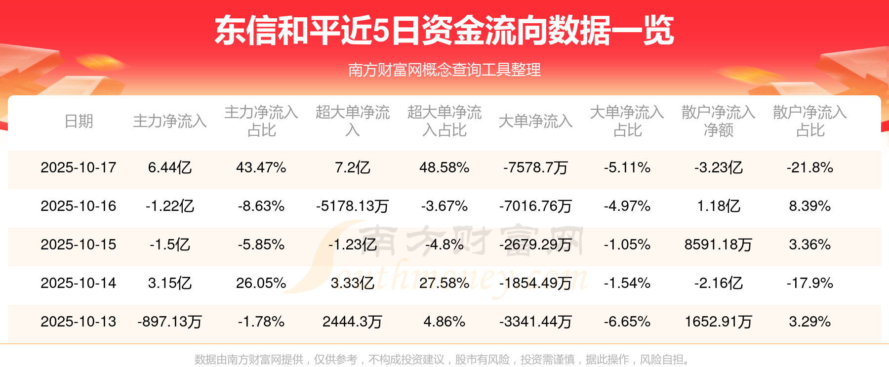 10月17日消息,东信和平主力净流入6.44亿元,超大单净流入7.2亿元,散户净流出3.23亿元。