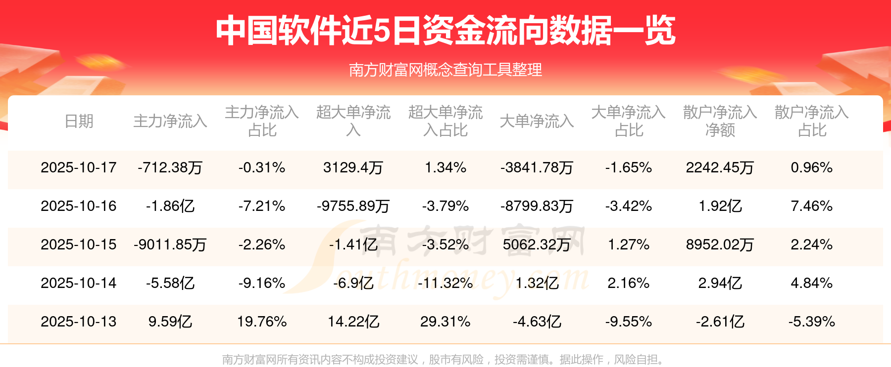 10月17日消息,中国软件10月17日主力净流出712.38万元,超大单净流入3129.4万元,大单净流出3841.78万元,散户净流入2242.45万元。