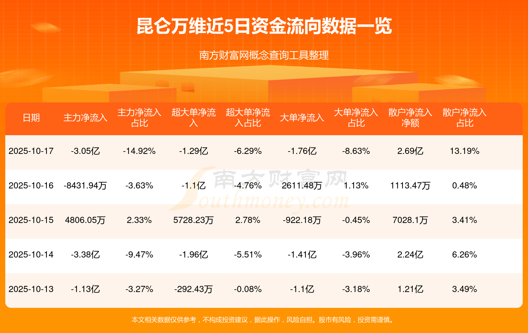 10月17日消息,昆仑万维主力净流出3.05亿元,超大单净流出1.29亿元,散户净流入2.69亿元。