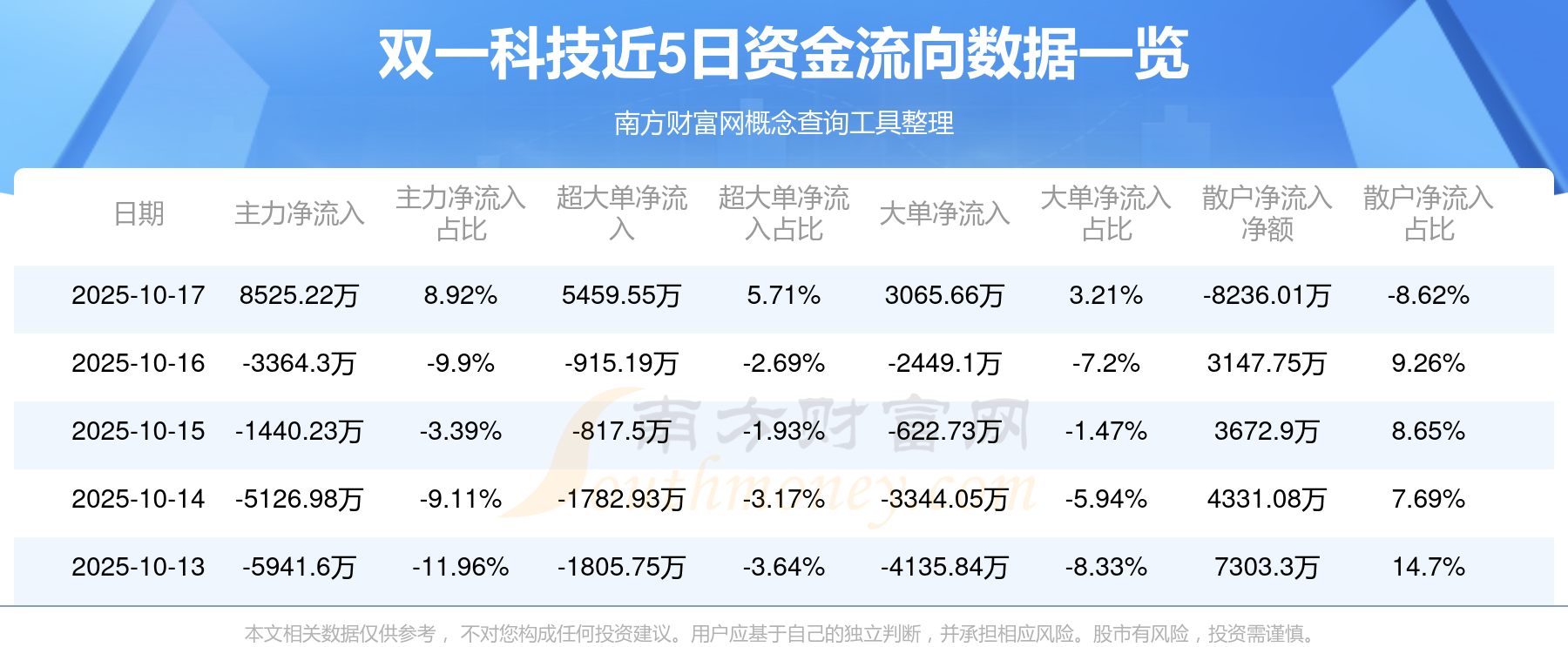 资金流向数据方面,10月17日主力资金净流流入8525.22万元,超大单资金净流入5459.55万元,大单资金净流入3065.66万元,散户资金净流出8236.01万元。