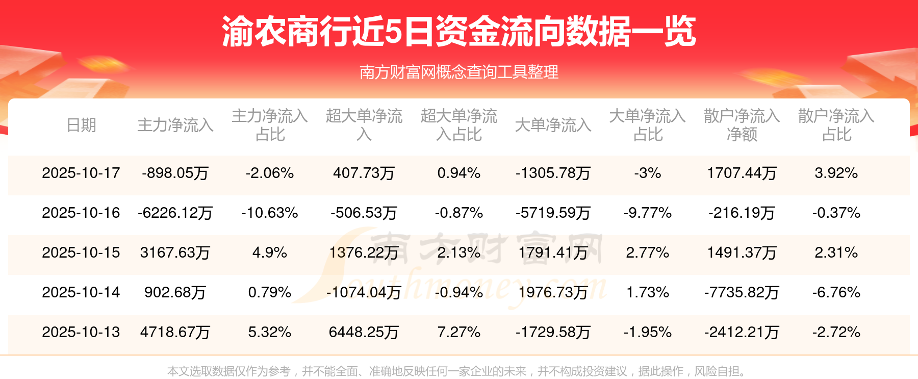 10月19日该股主力净入-898.05万元,其中资金流入方面:超大单净入4347.27万元,大单净入9872.63万元,中单净入1.23亿元,散户净入1.64亿元;资金流出方面:超大单净出3939.54万元,大单净出1.12亿元,中单净出1.32亿元,散户净出1.47亿元。