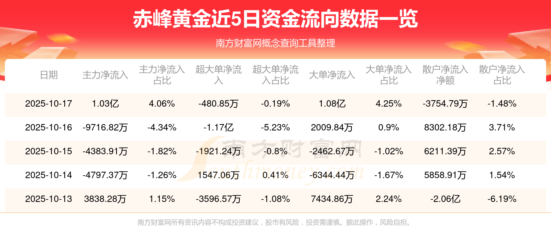 10月17日消息,赤峰黄金资金净流入1.03亿元,超大单资金净流出480.85万元,换手率4.82%,成交金额25.39亿元。