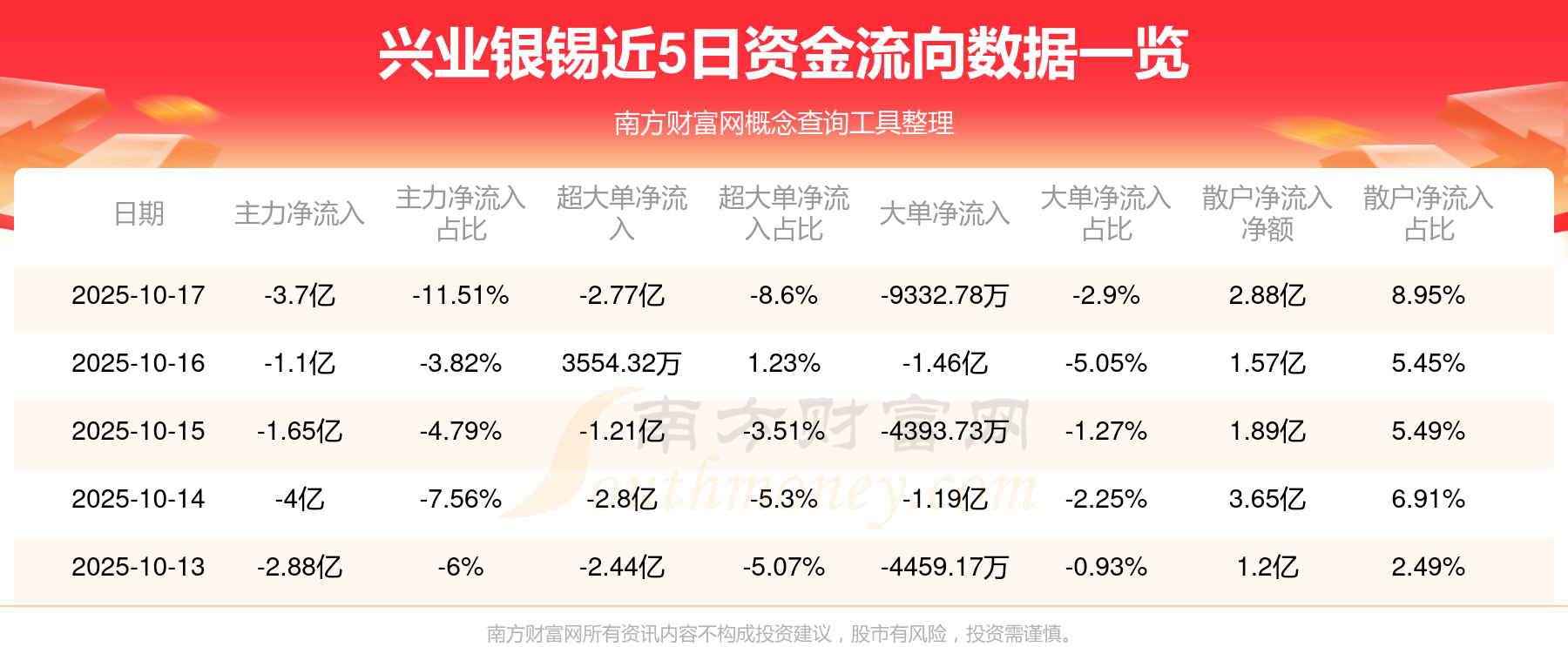 近5日资金流向一览见下表: