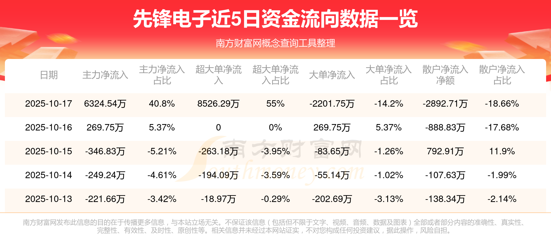 近5日资金流向一览见下表: