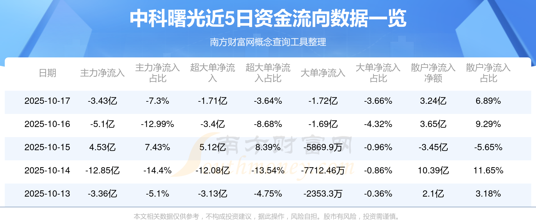 10月17日消息,中科曙光主力资金净流出3.43亿元,超大单资金净流出1.71亿元,散户资金净流入3.24亿元。