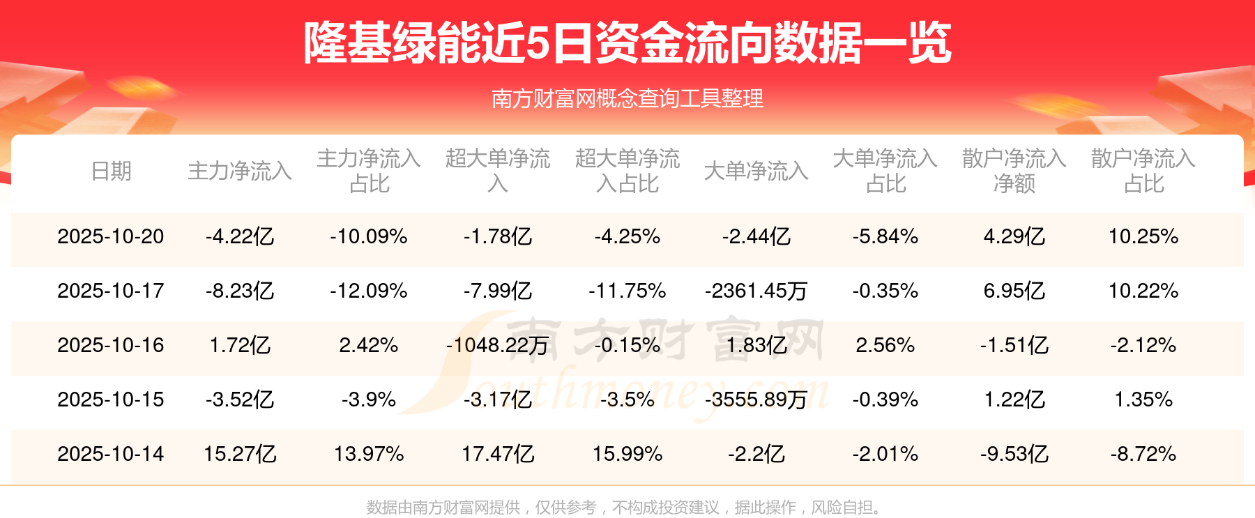 10月20日该股主力净流出4.22亿元,超大单净流出1.78亿元,大单净流出2.44亿元,中单净流出690.38万元,散户净流入4.29亿元。