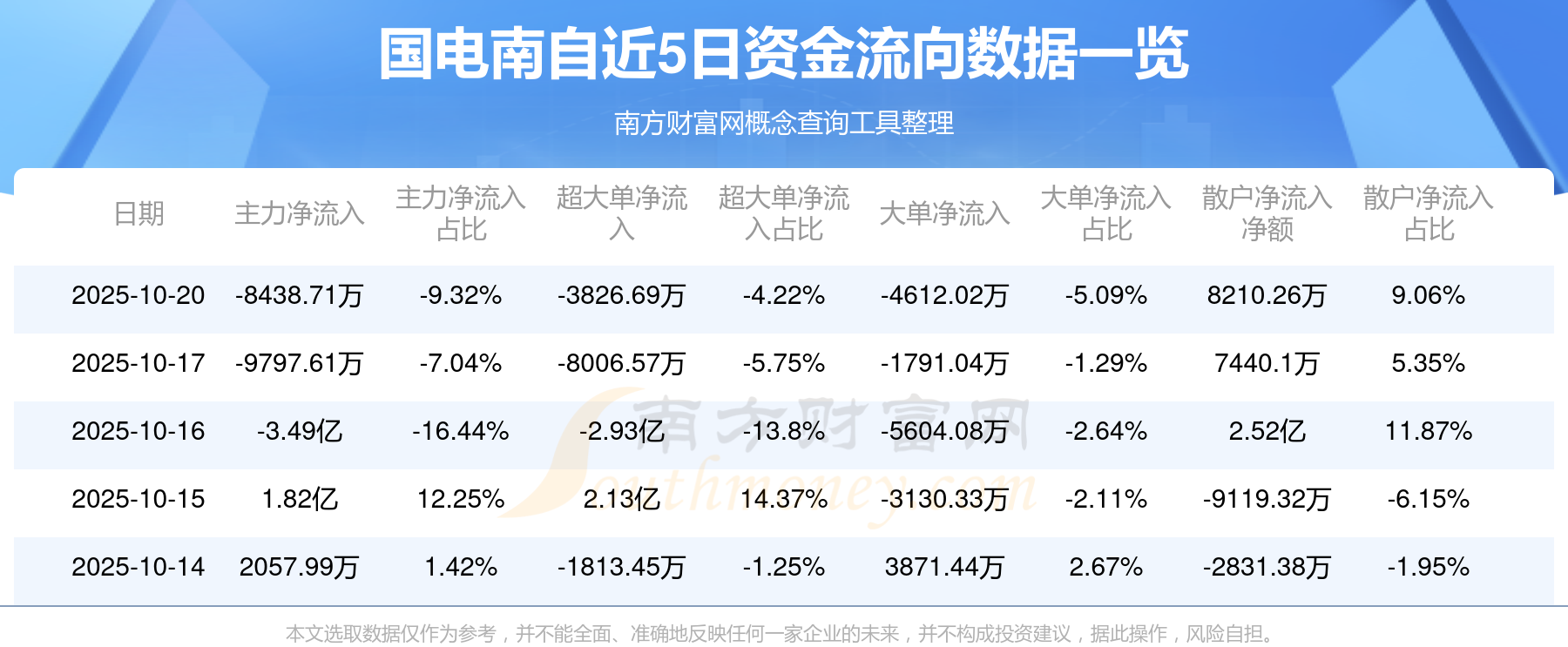 10月20日消息,国电南自10月20日主力资金净流出8438.71万元,超大单资金净流出3826.69万元,大单资金净流出4612.02万元,散户资金净流入8210.26万元。