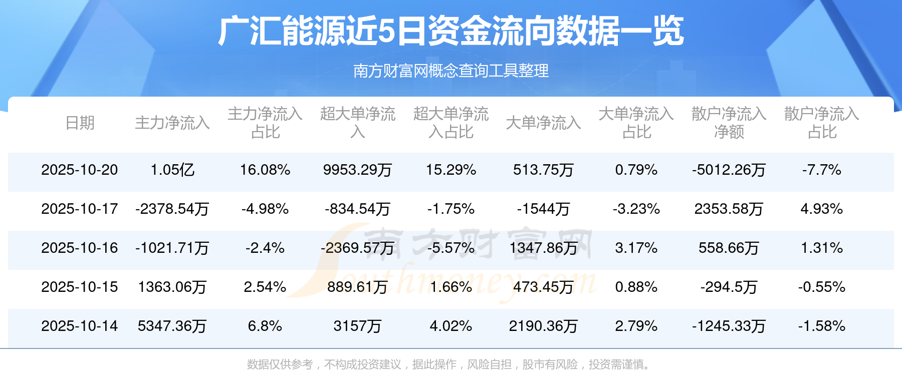 10月20日消息,广汇能源资金净流入1.05亿元,超大单净流入9953.29万元,换手率1.92%,成交金额6.51亿元。