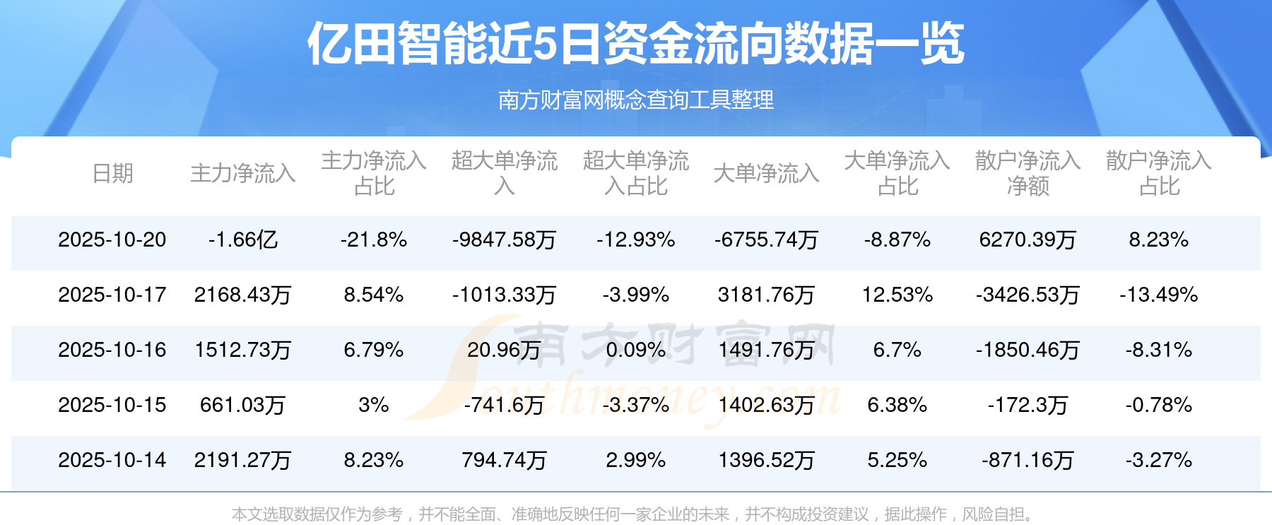 10月20日消息,亿田智能资金净流出1.66亿元,超大单净流出9847.58万元,换手率9.99%,成交金额7.61亿元。