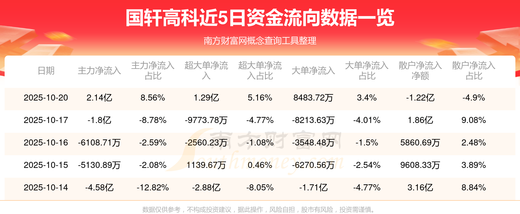 10月20日主力资金净流入2.14亿元,超大单资金净流入1.29亿元,换手率3.41%,成交金额24.97亿元。