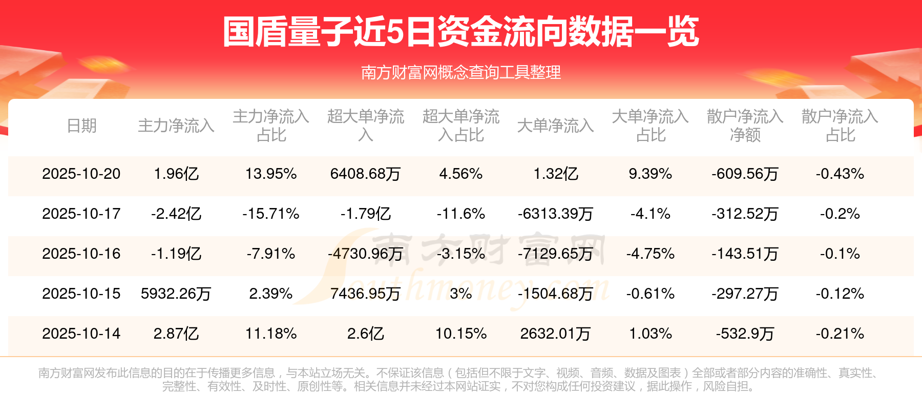10月20日消息,国盾量子主力净流入1.96亿元,超大单净流入6408.68万元,散户净流出609.56万元。