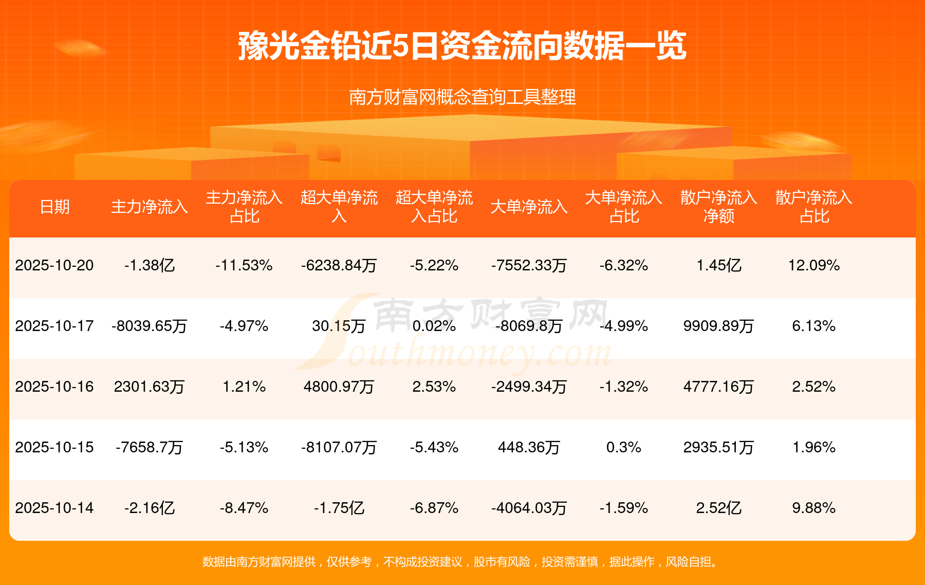 10月20日消息,豫光金铅主力净流出1.38亿元,超大单净流出6238.84万元,散户净流入1.45亿元。