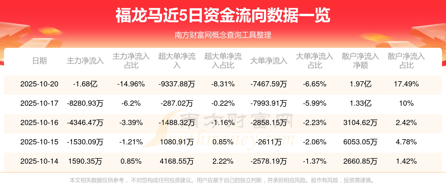 根据数据显示,福龙马股票在10月16日15时收盘涨1.87%,报价为22.830元。当日成交额达到11.24亿元,换手率11.82%,总市值为94.84亿元。