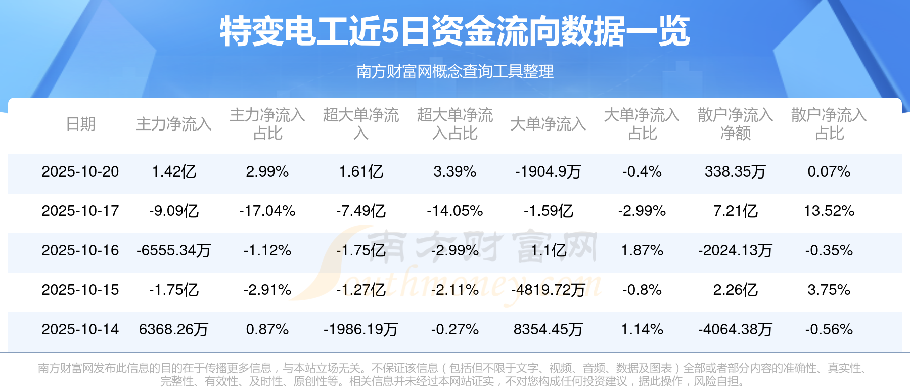 10月20日消息,特变电工资金净流入1.42亿元,超大单净流入1.61亿元,换手率4.78%,成交金额47.24亿元。