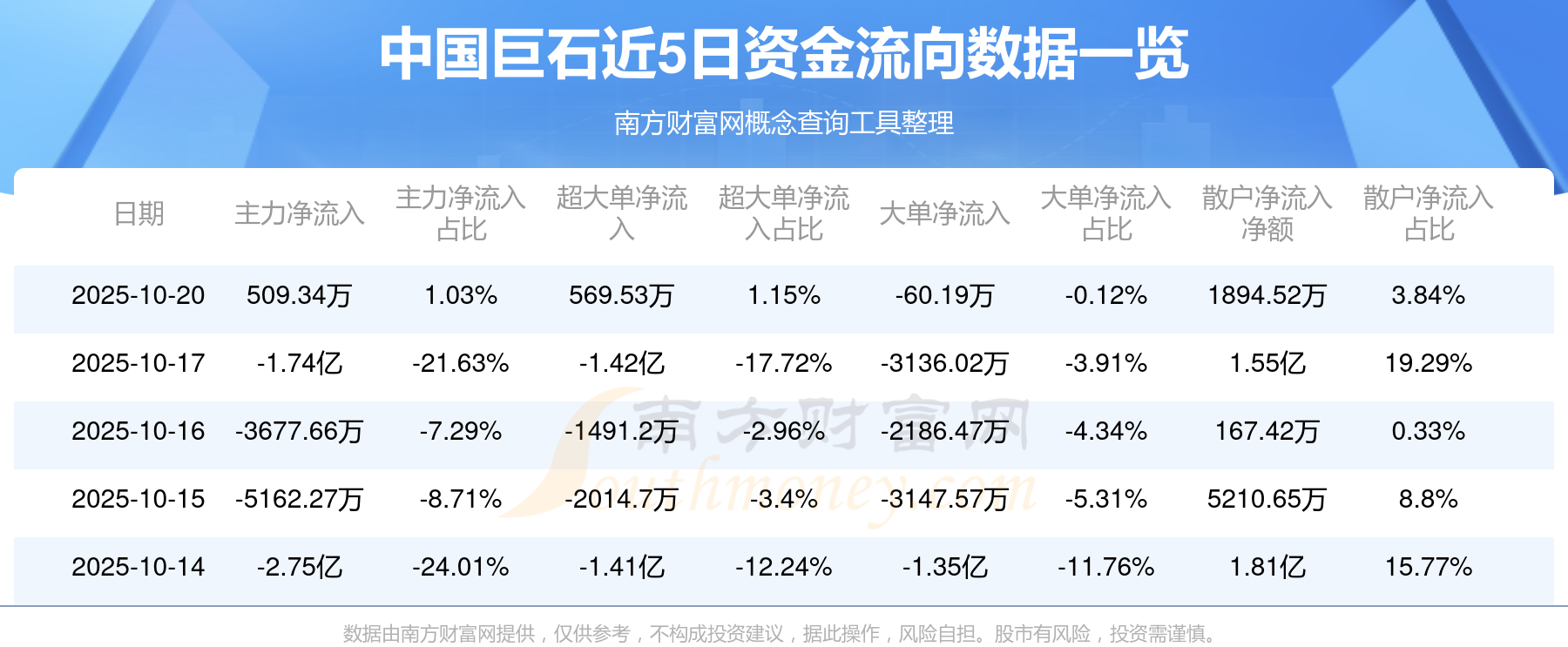 资金流向数据方面,10月20日主力资金净流流入509.34万元,超大单资金净流入569.53万元,大单资金净流出60.19万元,散户资金净流入1894.52万元。