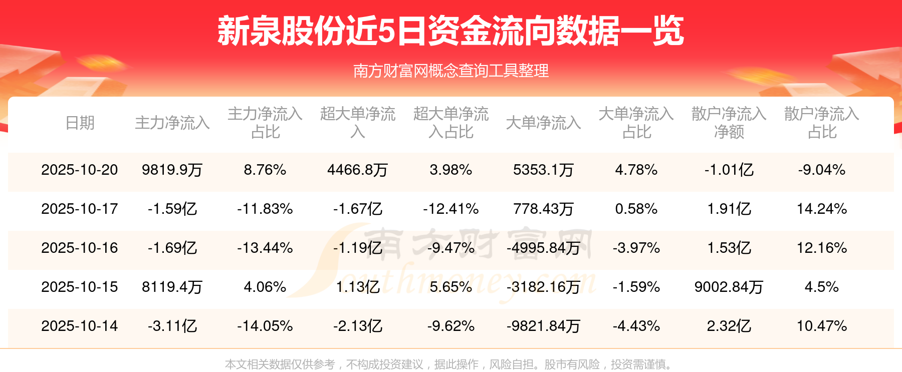 10月20日该股主力净入9819.9万元,其中资金流入方面:超大单净入1.38亿元,大单净入2.7亿元,中单净入3.45亿元,散户净入3.52亿元;资金流出方面:超大单净出9326.36万元,大单净出2.16亿元,中单净出3.42亿元,散户净出4.53亿元。