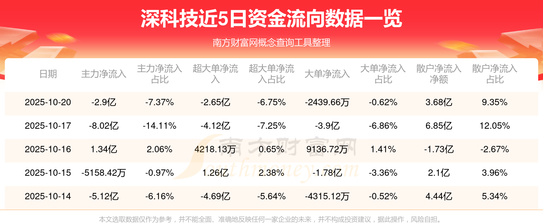 10月20日消息,深科技主力净流出2.9亿元,超大单净流出2.65亿元,散户净流入3.68亿元。