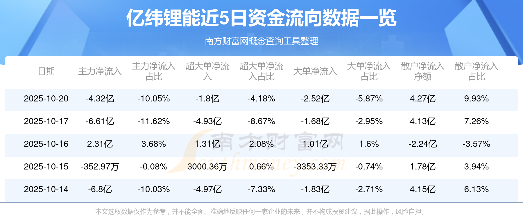 资金流向数据方面,10月20日主力资金净流流出4.32亿元,超大单资金净流出1.8亿元,大单资金净流出2.52亿元,散户资金净流入4.27亿元。