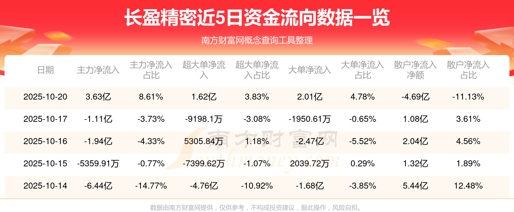 资金流向数据方面,10月20日主力资金净流流入3.63亿元,超大单资金净流入1.62亿元,大单资金净流入2.01亿元,散户资金净流出4.69亿元。