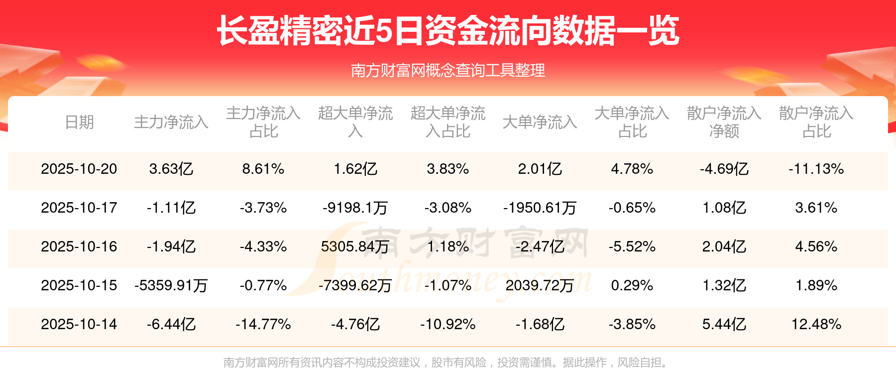 10月20日该股主力资金净流入3.63亿元,超大单资金净流入1.62亿元,大单资金净流入2.01亿元,中单资金净流入1.06亿元,散户资金净流出4.69亿元。