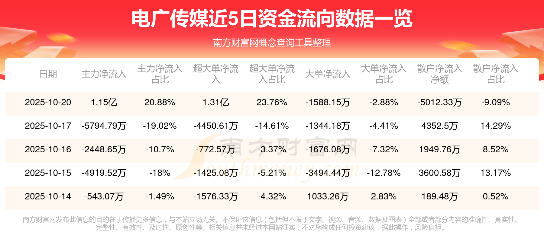 近5日资金流向一览见下表: