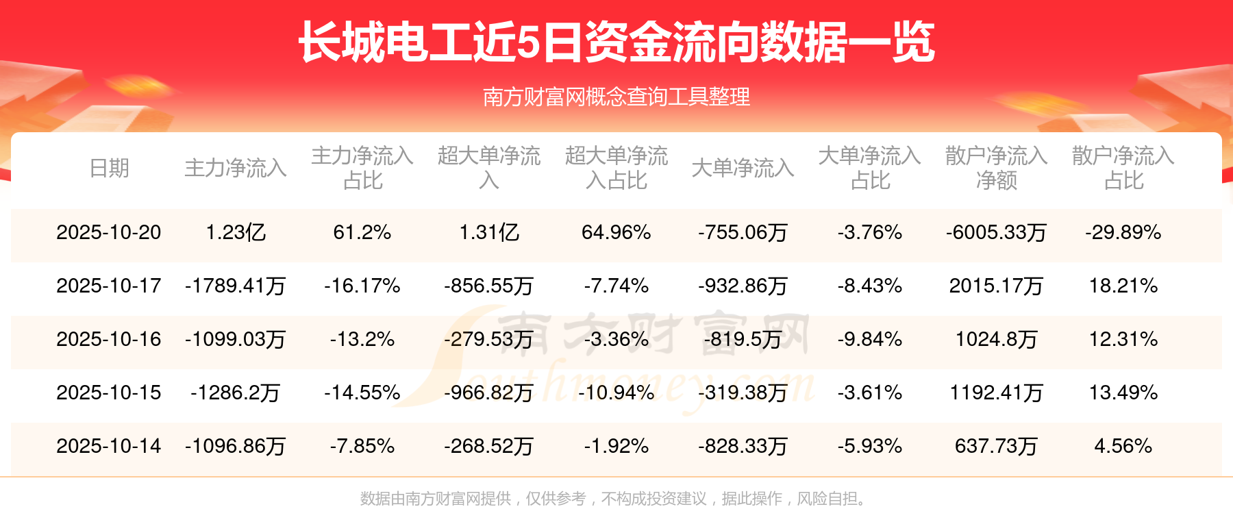 资金流向数据方面,10月20日主力资金净流流入1.23亿元,超大单资金净流入1.31亿元,大单资金净流出755.06万元,散户资金净流出6005.33万元。